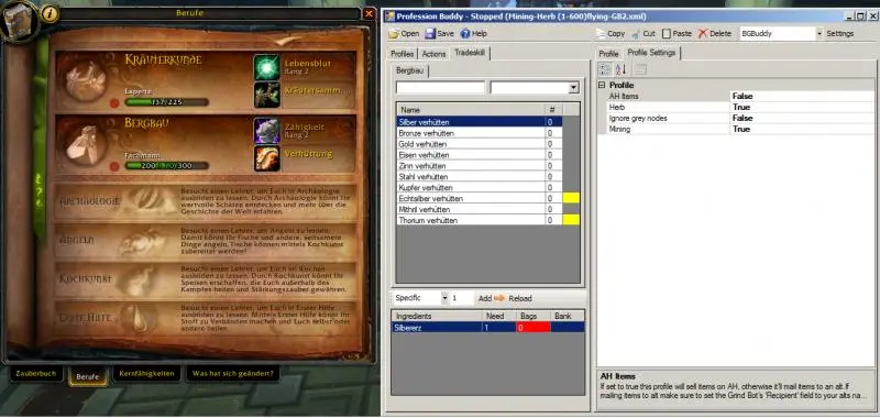 ich nutze Porfessionsbuddy mit dem dabei gelegten Profil 1-600 Mining & Herbing.
