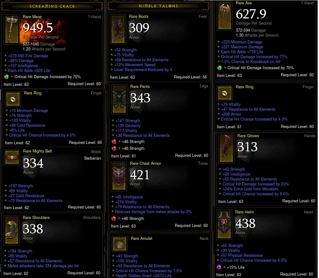--- ilvl 60 Rare: 14 [0,9 per hour] {3,97 %}