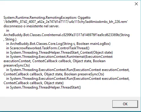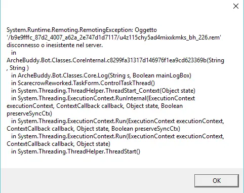 While using scarecrow, i'm getting this message after a few minutes of gathering. Worked just fine until today update, i'm currently using win 10 build 10240. When i close archeage, it crashes anyway.