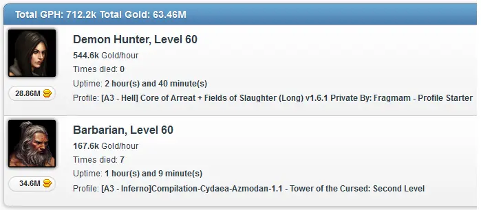 Is it normal that my bot is only able to get "Last run acquired 20730 gold" each run? It's like 260k GPH...