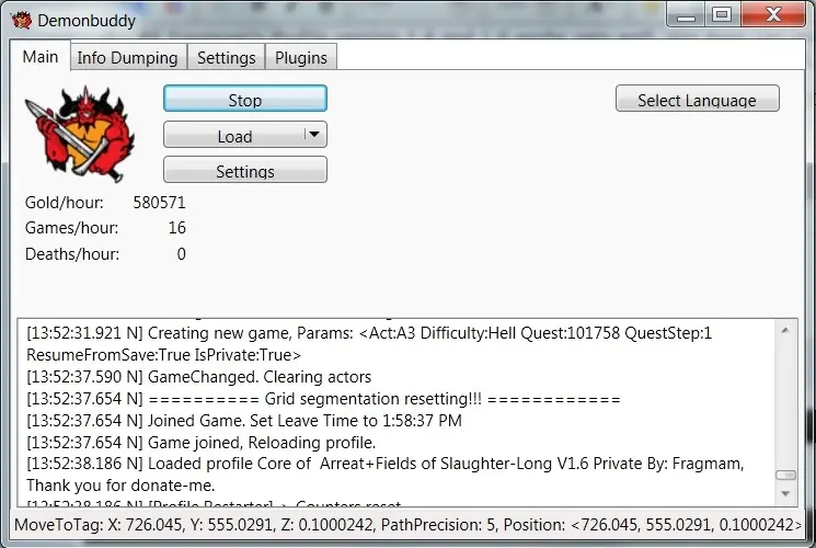 _ All Fragmam's Profile version 1.4 and 1.6 work very well, you guys can only got stuck, when u die, then retreat, then run same game again. When it happened, DB cant find the right route, so you got stuck. To prevent that, i use "logout" at death handling options of DB, even i dont die when b o ts in hell / nightmare. My only problem is ... input limit reach even im runing ver 1.6.1
