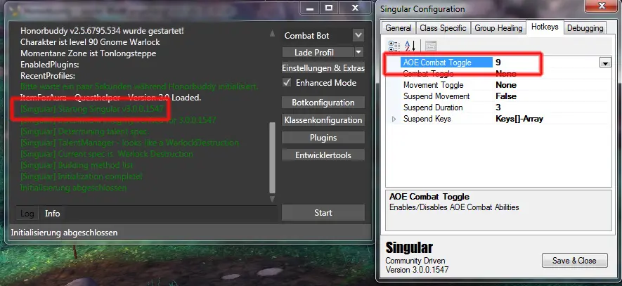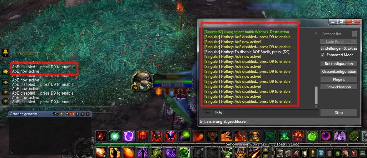 mein Problem handelt sich um AOE schaden mit Singular CC f?r mein Hexer habe ich in den Einstellungen eine AOE taste belegt und ausprobiert doch beim bet?tigen diese taste krieg ich immer die gleiche Meldung. (Siehe Bilder im Anhang). Liegt das an dem CC? muss ich andere Rotation runterladen? oder woran liegt das..