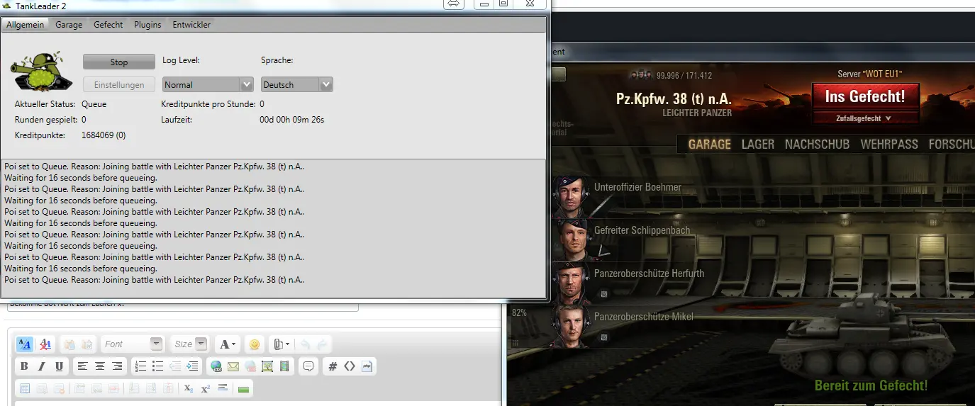 Nun ja ich bekomme es nicht zum laufen bin auch neu hier , er springt im Bild immer nur von Panzer zu Panzer aber startet nie ein Gefecht bitte um mithilfe ...