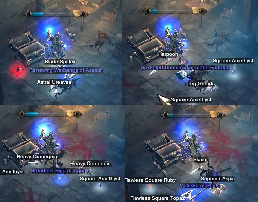 Attached log fragment from last screenshot, the one with Valaska of Sores. There were 2 blue items that dropped, Wicked Archaic Staff of Omens and Valaska of Sores.