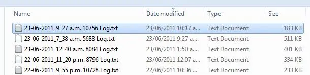 Los archivos de registro son nombrados por fecha, por ejemplo 23-06-2011 Log.txt
