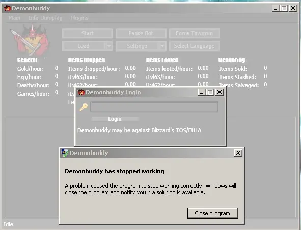 It happens over and over again and i cant come further then that no matter how many Demonbuddy?s i download.