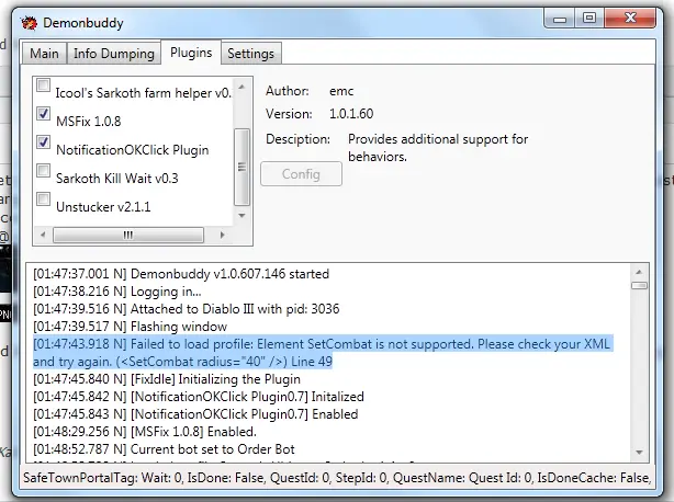 Code:[21:21:36.958 N] [EMCBehavior] SafeTownPortalTag: Porting to town in 0 [21:21:43.999 N] [EMCBehavior] SafeTownPortalTag: Porting to town in 0 [21:21:46.569 N] [EMCBehavior] SafeTownPortalTag: Porting to town in 0