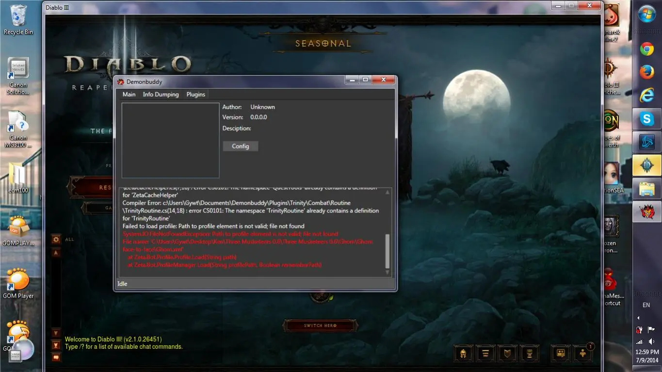 My Demonbuddy stopped working and no Trinity or quest tool at plugins? Even i download and put them in the same folder?