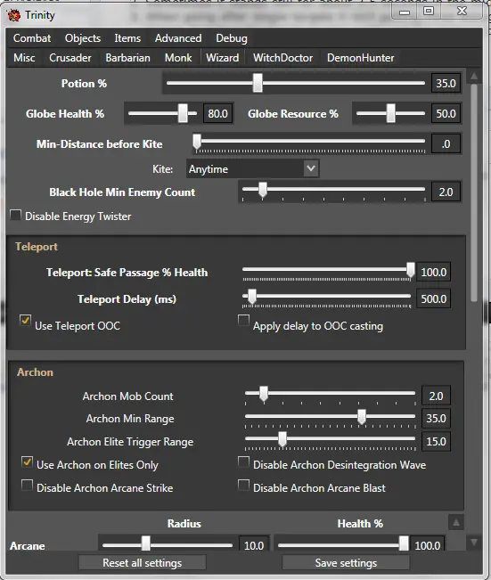 do you mind posting your trinity settings ? d3planner too maybe ?