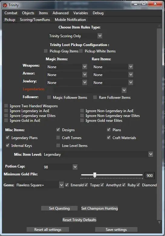 what i want: pickup all legendaries, pickup all gems and pickup all crafting materials.