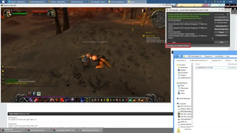 Ich wollte danach, denn Buddy starten und der lud auch soweit das Profil ohne irgendwelche Fehlermeldung. Doch das Problem bei der Sache ist, dass der Bot sich nicht bewegt. Es steht zwar unten im Bot, dass er sich zum n?chsten Hotspot bewegen will. Doch er steht einfach nur dumm rum. Ab und zu l?uft der Bot im Kreis aber, das wars auch. Ich habe schon versucht einmal ein anderes Profil zu laden aber hat auch nichts gebracht. Am Bot kann es nicht liegen da das Questing 100% l?uft und Funktioniert.
