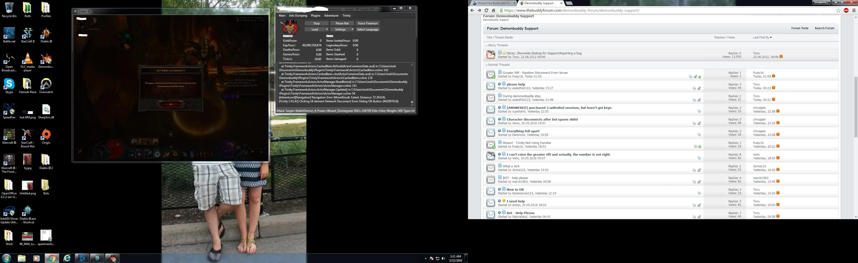 And it just happened again, 2nd game in a row. Message pops up in game saying i'm disconnected from server. I just got done playing with my brother for a couple hours and no disconnects. I'm hardwired to the modem. I never have disconnect issues ever, only when using Demonbuddy.