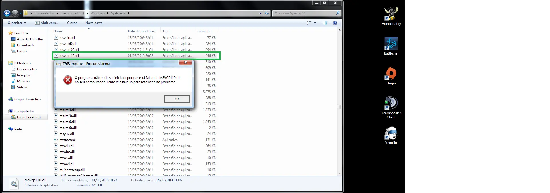 The screenshot on the attachment file proves that I have in my computer the msvcp110.dll file and the error persists.