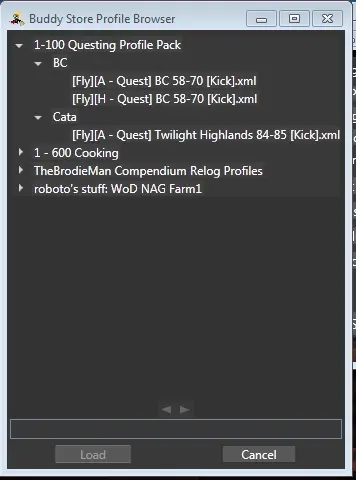 i dont know why but when i go to Quest profile at buddystore to lvl up my alts i can see only BC Quest line and all the other missing....i tried to unistall and install honorbuddy installer/microsoft c ++ and net.framework.....i unistall and install everythinG from begining and i formated my pc 3 days ago and still i can see only BC quest only..can u help me?what i am doing wrong?
