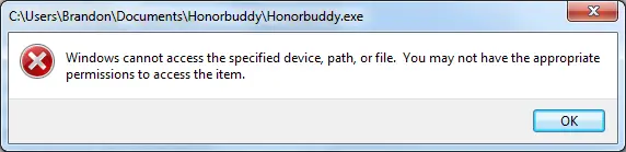 You need to run both the WoWclient and Honorbuddy with Windoze admin privileges.