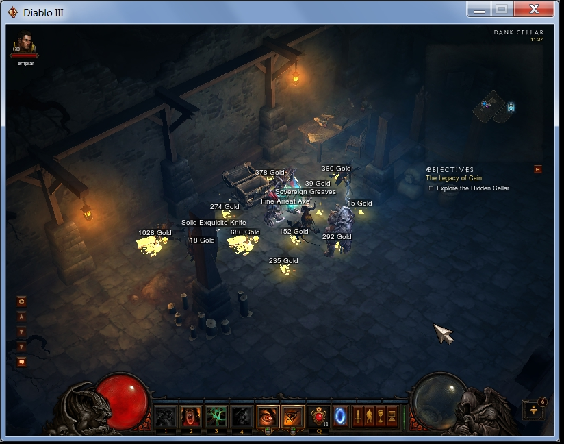 Alright so as you can see on the picture the gold is lying around my char. What I figured is that the bot can't calculate which stack to pick up first, as the range is (about) the same?