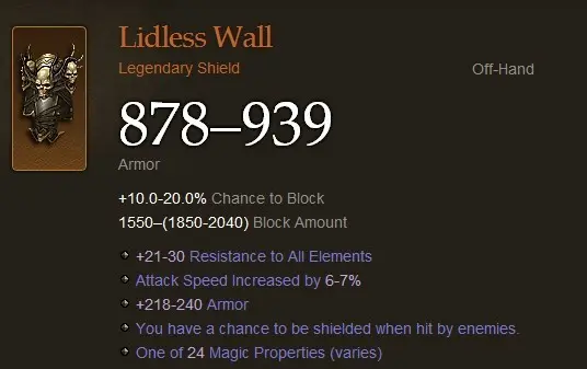 this shield has effect that will reduce 100% damage when you got hit, the effect lasts 1.5s and wont be triggered in another 30s.