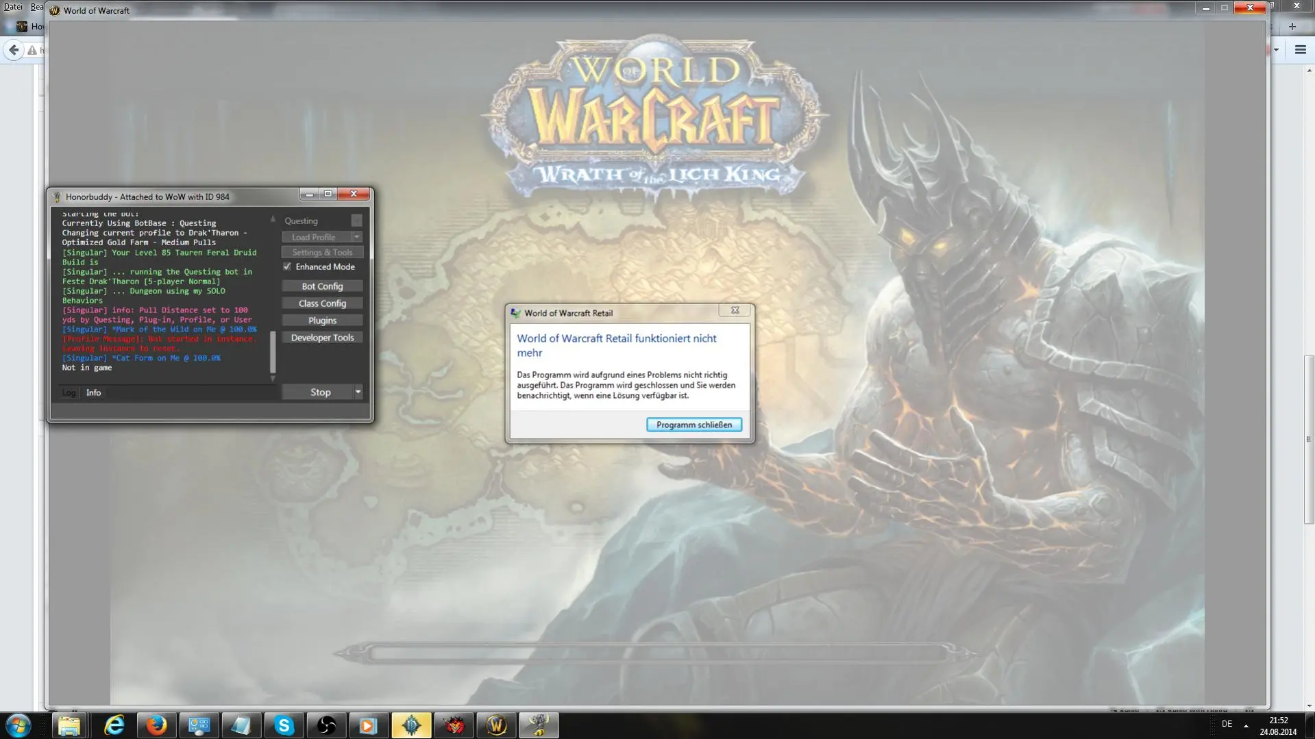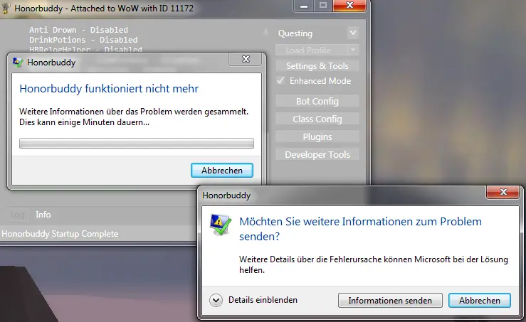 Ich habe eine Frische-Neue HB installation gemacht. Sobald der Charakter wieder die Instanz betritt, WoW Crash!