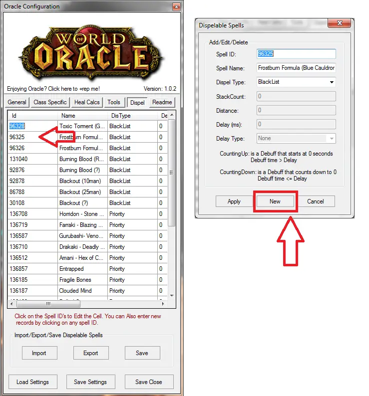 Click on the Spell ID to edit the cell or add a new Dispel-able Spell.