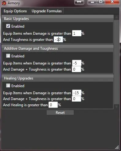 Has anyone1 found a good upgrade formula settings for a wizard?