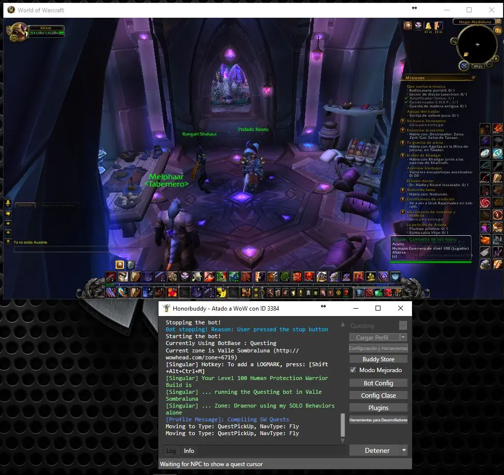 Hello my HB does not work with the missions, when they activate my character always does the same, goes to first available flight and travel Shadowmoon Valley, to Draacorium, enters the crescent home and waits in front of the NPC "Prelate Reenu "and so no longer do anything more, HB displays the message" Waiting for NPC quest to sho cursor to "please I need help.View attachment 1212 2016-05-27 09.25.txt