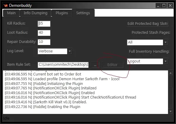 T timestop New Member Joined Jun 16, 2012 Messages 30 Reaction score 0 Jun 16, 2012 #1 I'm a new user, i downloaded the latest version of demonbuddy 1.0.486.100 the buttons aren't working . when i click on it .. nothings opening or happens Attachments settings.webp 22.2 KB · Views: 58 main.webp 18.3 KB · Views: 62 plugins.webp 19.9 KB · Views: 64 infodumping.webp 20.9 KB · Views: 58