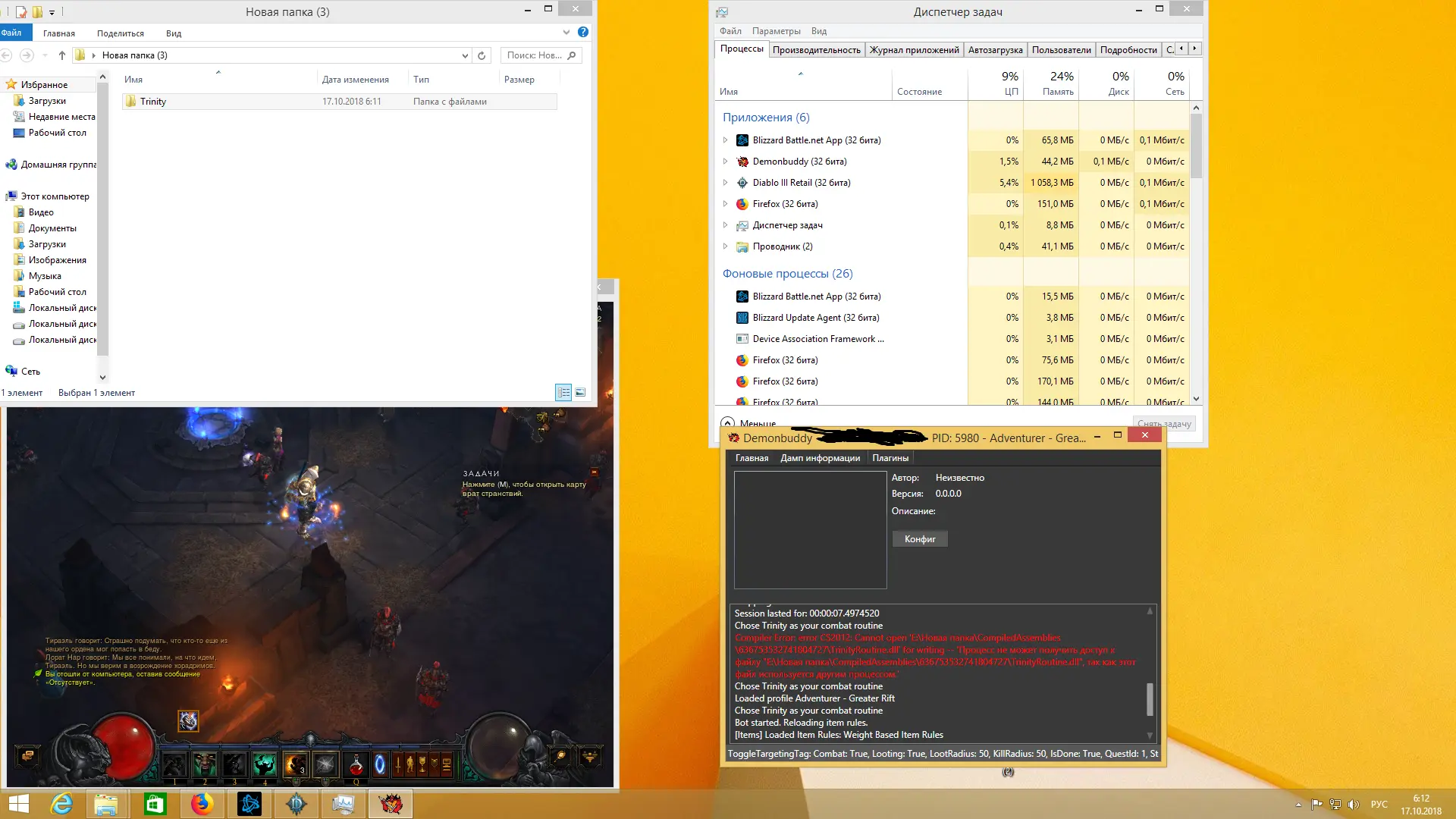 Before that, the bot worked with lags, hangs but it worked!!!!! Right now downloaded Trinity (found on forum). I'll go test the plugin I downloaded. Indeed, already beginning to burn from all of this.