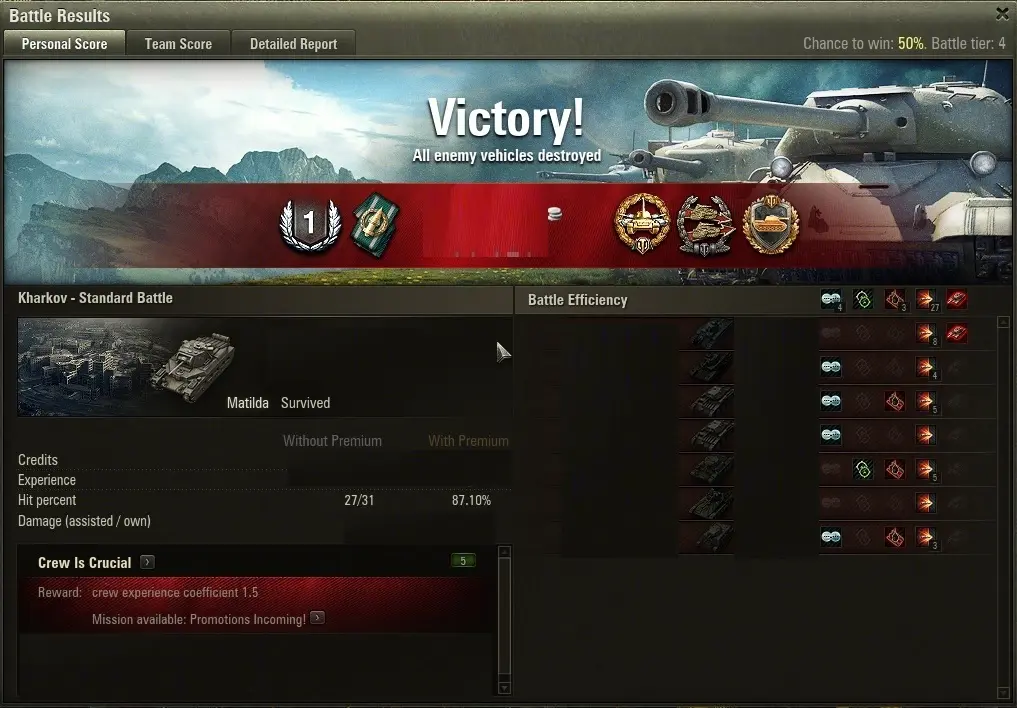 My win rate on both tanks is 49%. This is an excellent win rate. And I usually get the "Mastery Badge 3rd class".