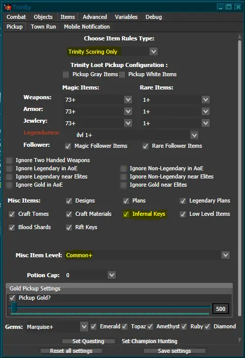Is it known that Trinity does not pick up infernal keys and forgotten souls. My trinity settings are set to pick up keys and other materials common + as well as ilvl1+ legionaries