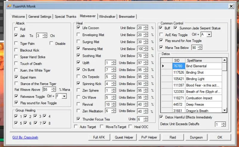 Here is a Screenshot of my 25man Raid Settings. Fistweaver i just leave it on all the time and let the mana % do its part :)