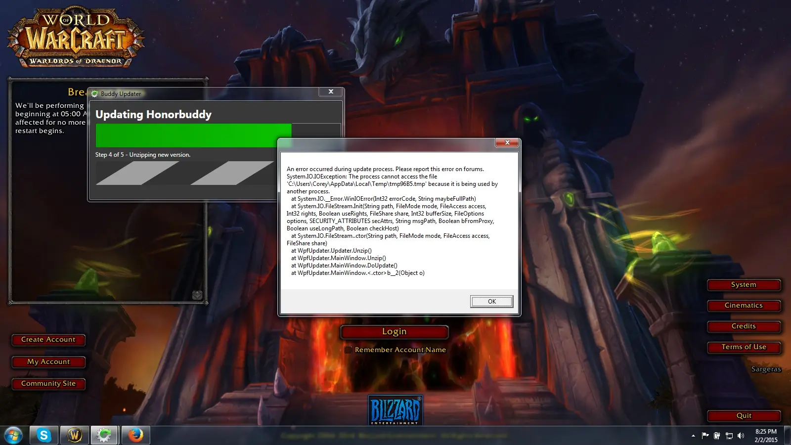 Earlier today I was running HB just fine. I logged out for a short period and closed the bot. When I tried to re-open the program, it tells me there is an update. When I start the process, it gets to the unpacking process and then gives me an error. Here is a Screenshot, along with an attached log.