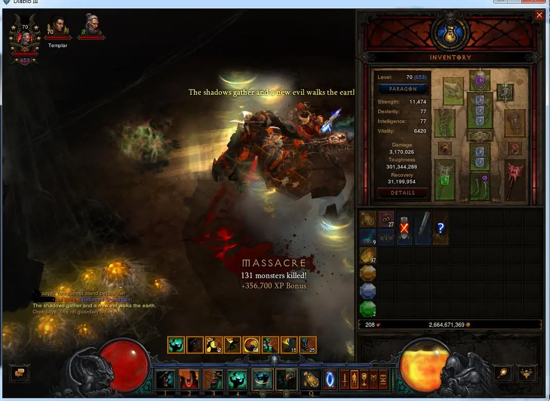 So here are some screens of my barb clearing a 47, but running out of time. I also ran this 4 hour session using Convention ring as a test. In the 47 rift, my barb met a Plagued, Waller, Molten, WormHole(?) I believe. So my barb died like 13 times... but those situations are VERY rare. Plus I was running a higher damage setup. If you want to NEVER die, run all res gems, heavy VIT, stack res all gem, taeguk, pain enchancer. WOTB - Giant, Unity, BK weps, COTA - 50% reduc, 50k+ loh, and you will never die with 6WW/4IK. Ever.